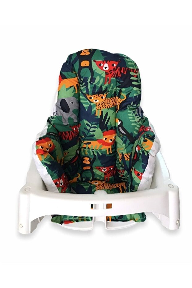 Çift taraflı kullanıma uygun çift desenli 1 adet mama sandalyesi minderidir. Bir Yeşil Orman Desenli diğer yüzü Beyaz üzerine Yeşil Yıldız Desenlidir. İkea Antilop, Pilsan ve benzeri küçük mama sandalyelerine göre tasarlanmıştır. 30 derecede Çamaşır Makinasında yıkanabilir.