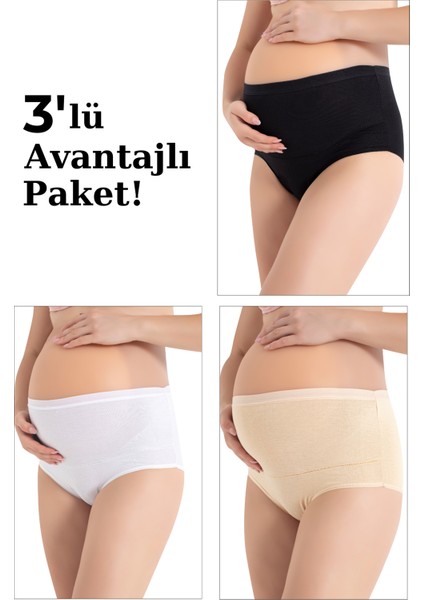 3'lü Paket Kadın Renkli Pamuklu Likralı Yüksek Bel Hamile Lohusa Külot Esnek ve Rahat Kumaş