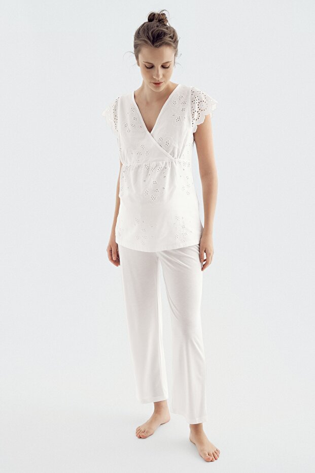 Dokuma Pamuklu Kısa Kol Hamile Pijama Takım