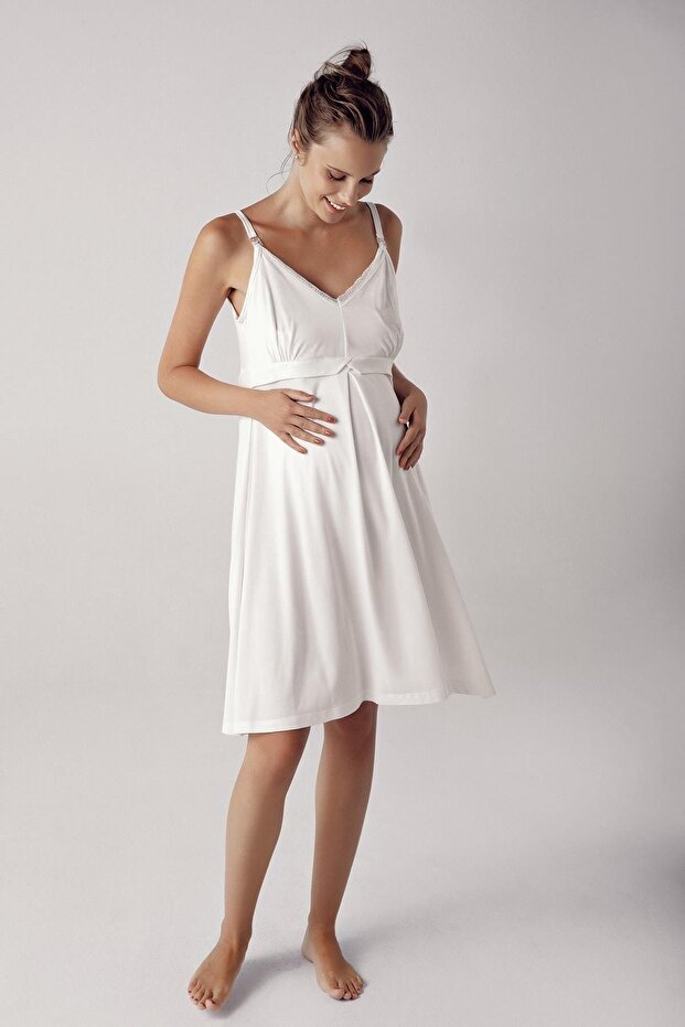 Kadın Askılı Esnek Viskoz Kumaş Hamile Gecelik 13127