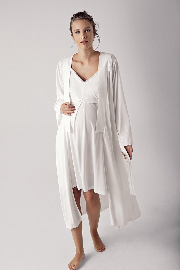 Kadın Esnek Viskoz Hamile Sabahlık Gecelik Takım 13406