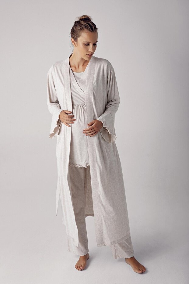 Artış Uzun Kollu Likralı Viskoz Hamile Gecelik Sabahlık Takım