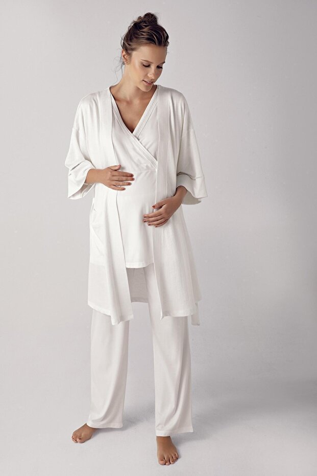 Artış Uzun Kollu Likralı Viskoz Hamile Gecelik Sabahlık Takım