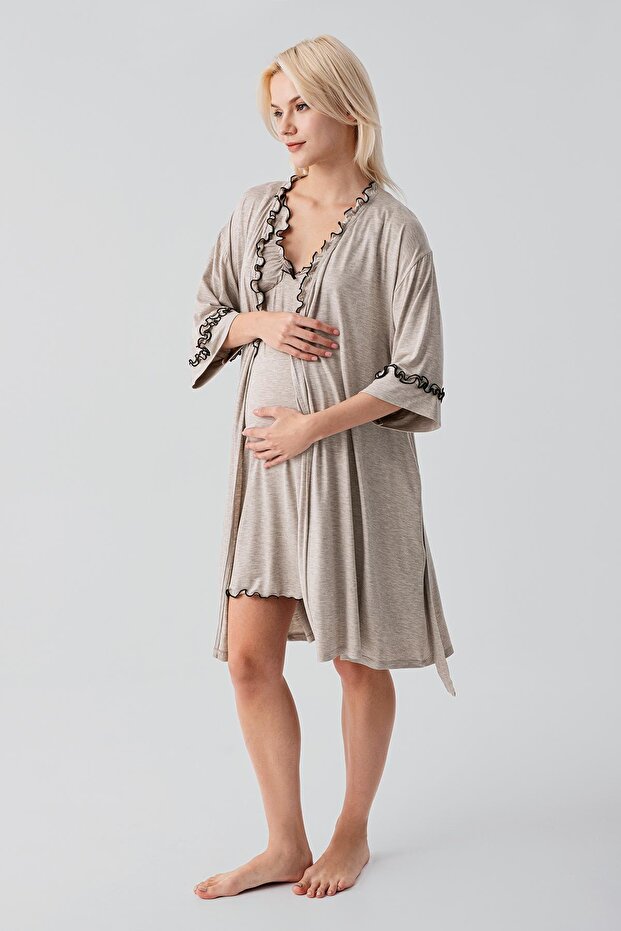 - Hem hamilelik sürecinde hem de doğum sonrası lohusa döneminde tercih edilebilecek bu sabahlıklı hamile gecelik takım, uyku giyimi ve günlük ev giyimi için ideal bir seçenektir.