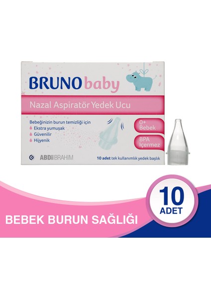 Bruno Baby Nazal Aspiratör Yedek Uçlar - Yumuşak, BPA İçermeyen, 10 Adet, Manuel ve Taşınabilir Kullanım İçin