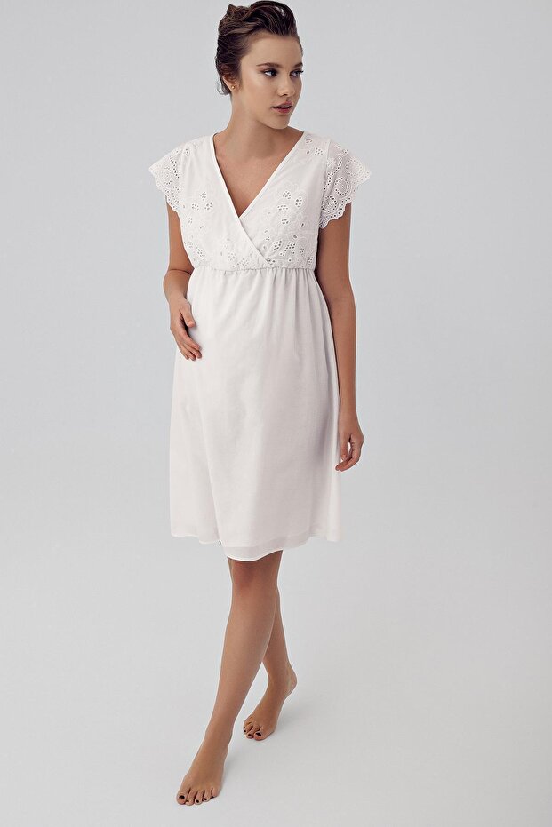 Dokuma Kısa Kollu Pamuklu Hamile Gecelik