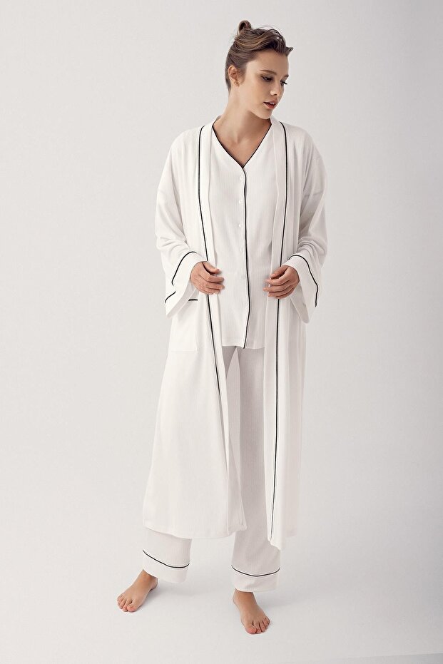 Düğmeli Kısa Kollu Esnek Viskoz Hamile Sabahlık Pijama Takımı 14306