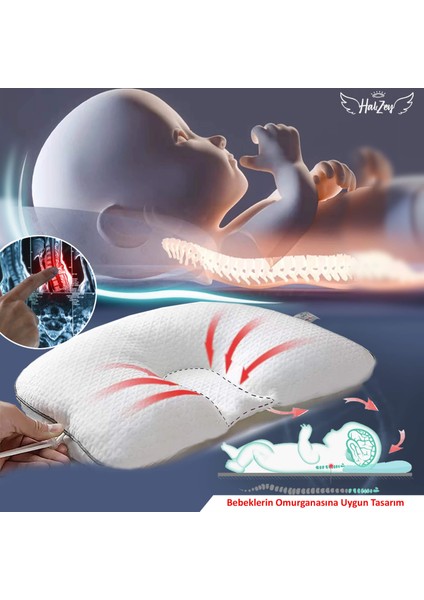 - Bebeklerin kafa yapısı yenidoğan döneminde ve sonrasında yumuşaktır. Bu nedenle şekil değiştirmeye müsaittir. HALZEY Kafa Şekillendirme Yastığı Oluşabilicek Kafa Şekil Bozuklarını Engellemek ve ilk 6 Aylık Dönemde Yatma Şekli Sebebiyle Kafa Şekil Bozukluğunun Giderilmesine Yardımcı Olmaktadır.