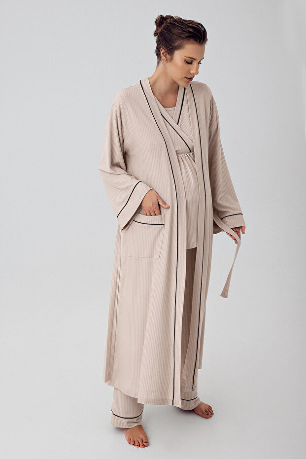 Artış Uzun Kollu Likralı Viskoz Hamile Gecelik Sabahlık Takım