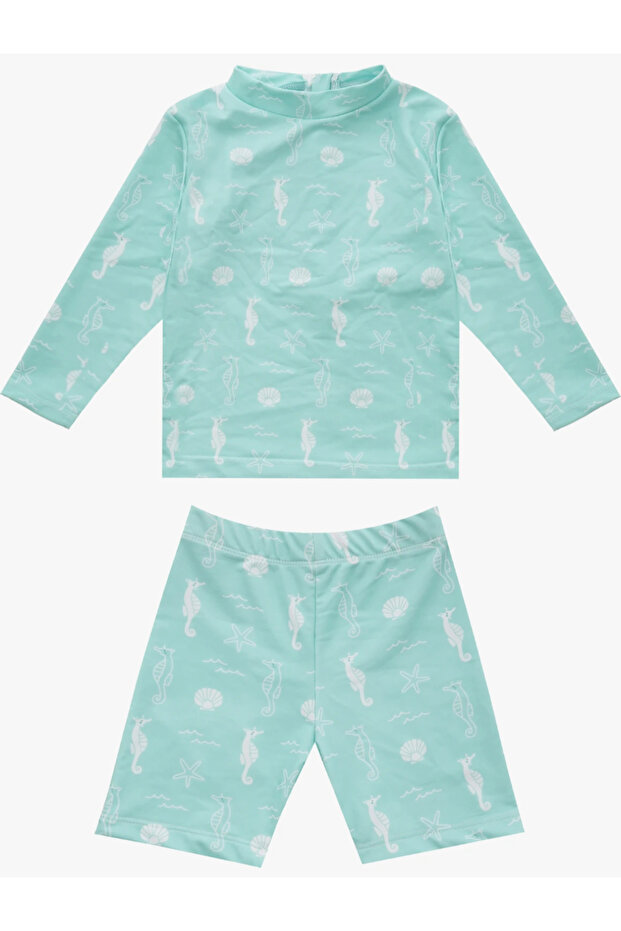 Uzun kollu tasarımı ile güneşten maksimum koruma hedeflenmiştir Uzun kollu üst ve şort olmak üzere 2 parçadan oluşmaktadır.