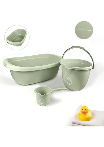 Meleni Baby 3’lü Bebek Banyo Seti - Bebek Yıkama Küveti - Su Kovası - Maşrapa - Yeşil