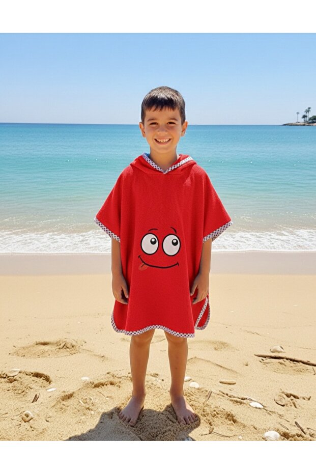 PAMUK HANIM Pamuklu yumuşacık Havlu Kız-erkek Çocuk Deniz Plaj, Havuz, banyo Kapşonlu Panço KIRMIZI /GÖZ