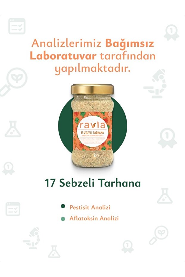 Ravla 17 Sebzeli Tarhana, %85 oranında gerçek sebze içeren, katkı maddesi içermeyen, uzun süre fermente edilmiş ve zeytinyağıyla zenginleştirilmiş özel bir çorbalık karışımdır. Hem yetişkinler hem çocuklar için dengeli, doğal ve güvenilir bir öğün alternatifidir.