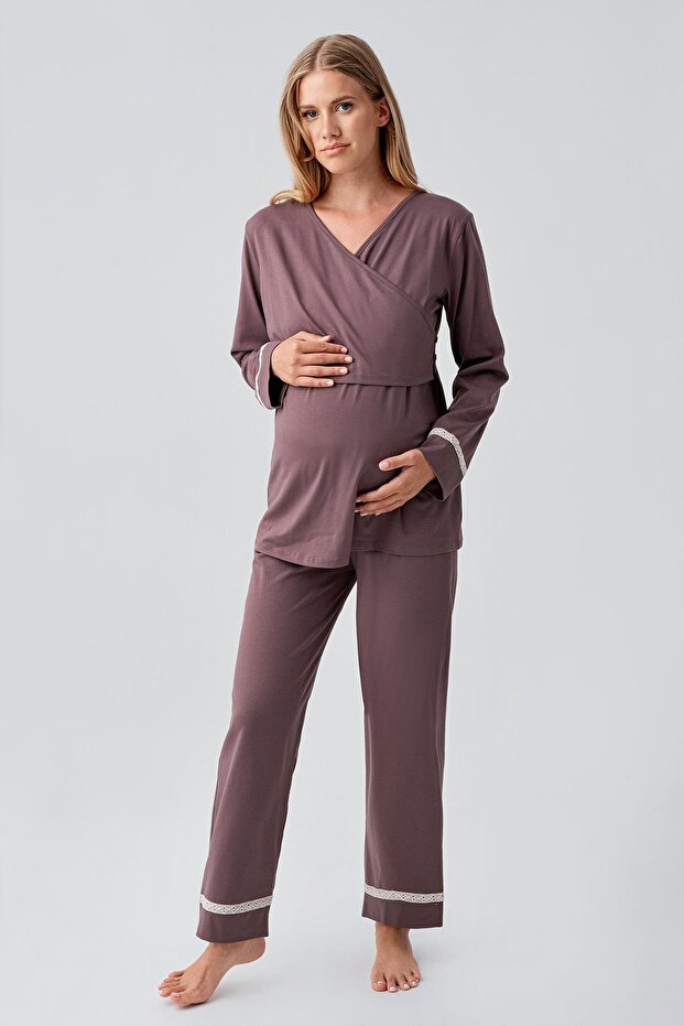 Uzun Kollu Esnek Pamuklu Hamile Pijama Takım