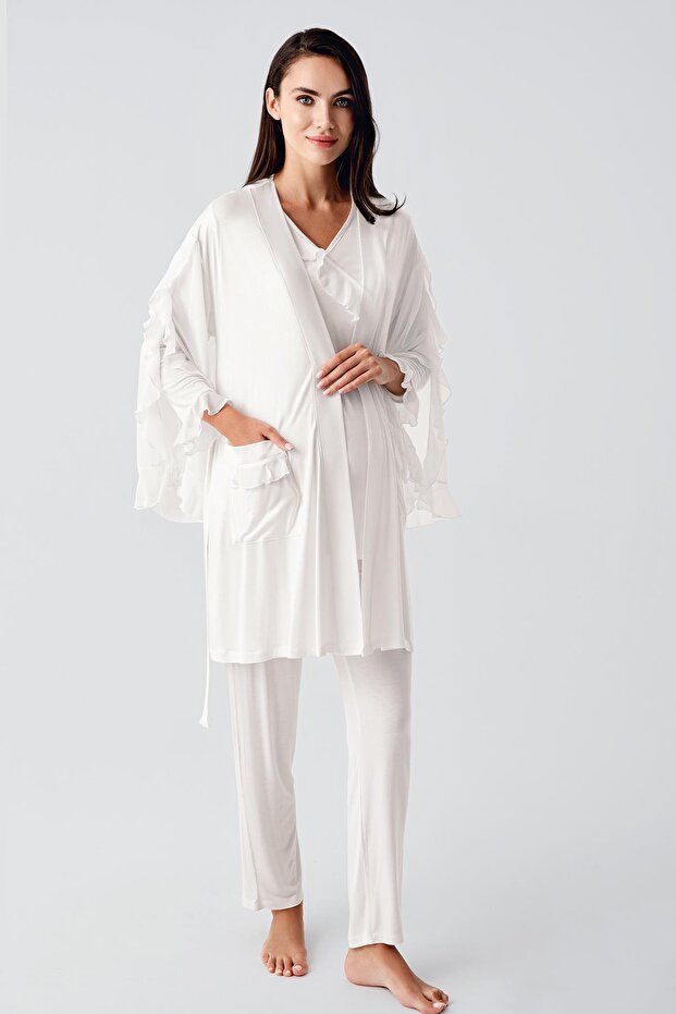 Uzun Şifon Kollu Esnek Vizkoz Hamile Sabahlık Pijama Takım